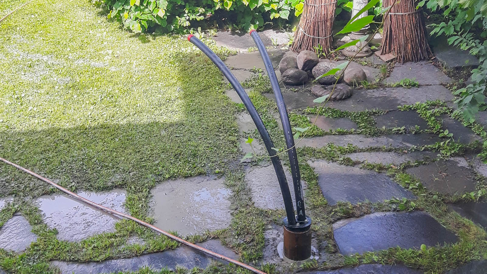 Energibrønn klar til å bli koblet til ei bergvarmepumpe.